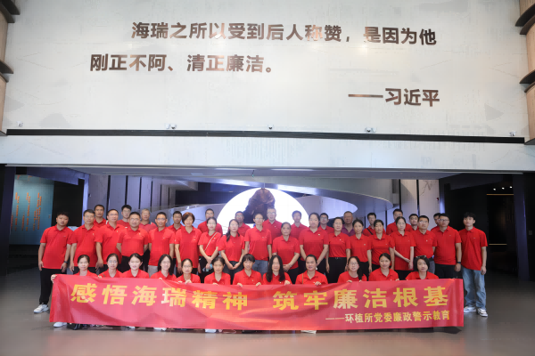 为深入贯彻落实党纪学习教育和党风廉政建设工作部署安排,进一步教育引导党员干部增强拒腐防变意识,8月9日,环植所党委组织干部职工前往海瑞文化公园廉洁文化教育基地开展廉政警示教育学习。