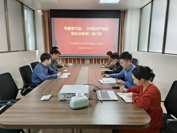 2024年新年伊始,湛江实验站纪检工作小组召开新修订的《中国共产党纪律处分条例》(以下简称《条例》)专题学习会。会议由湛江站建议纪检工作小组组长胡永华主持,各党支部书记、支委和纪检工作小组成员参加。
