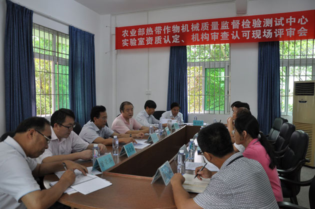 受国家认监委和农业部委托,由农业部农用动力机械及零配件质量监督检验测试中心(成都)、湛江市质量技术监督局、农业部农用动力机械及零配件质检中心(南京)、国家植保机械质量监督检验中心四位专家组成的双认证评审组经过三天审查和现场跟踪考评后认为:农业部热带作物机械质量监督检验测试中心基本符合国家计量认证和农业部机构审查认可的要求,同意现场评审通过。