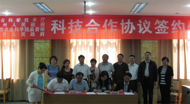 5月21-24日,品资所陈业渊所长带领王祝年副所长、尹俊梅副所长及南药、果树、蔬菜、木薯等方面的专家前往贵州,与该省科技厅、黔南州和罗甸县签订了艾纳香产业发展四方科技合作协议。这标志品资所与贵州省科技深入合作迈出了重要一步。