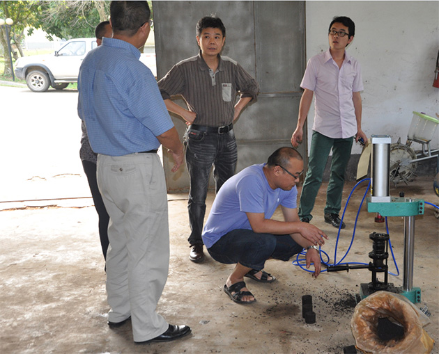 4月22日,国家林业局桉树研究与开发中心陈主任带领技术骨干到农机所对固体肥料成型机进行验收。