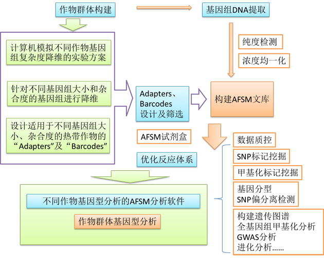 近日,生物所在高通量简化测序技术研究领域获得突破,种质与基因资源研究室夏志强博士发明了AFSM技术,能够提供世界领先的简化测序和甲基化解决方案,相关成果已发表于Nature旗下子刊Scientific Reports(Xia et al., 2015; IF: 5.578),并申请了国家发明专利(专利号:201410154134.9)。AFSM技术通过对酶切获得的AFSM-tag进行高通量测序,能够降低基因组的复杂度,操作简便,同时不受参考基因组的限制,可快速鉴定出高密度的SNVs与甲基化,用于遗传连锁图谱的快速构建、QTL定位、自然群体演化与结构分析、全基因组关联GWAS分析和快速进行群体表观遗传学甲基化研究。