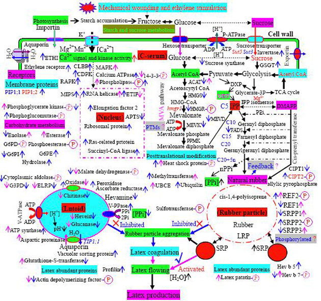 图2乙烯刺激巴西橡胶树胶乳增产的蛋白质调控机制模式图