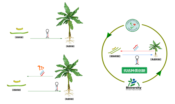 目前的研究表明小RNA在调控香蕉-枯萎菌互作的共同进化过程中发挥着重要的作用。项目拟针对互作的双方,挖掘小RNA在香蕉-枯萎菌互作中的作用,联合国际生物多样性中心(Bioversity International)开展合作研究,以互作中的功能性小RNA为靶标HIGS转化后,评估转基因株系的抗病性和商品化指标,并最终培育出抗枯新种质。该项目将分子机制直接应用到抗性育种,体现了理论研究与应用研究的密切结合,具有重要的理论意义及实际应用价值,也将为其他农作物抗病育种提供新的策略和理论基础。