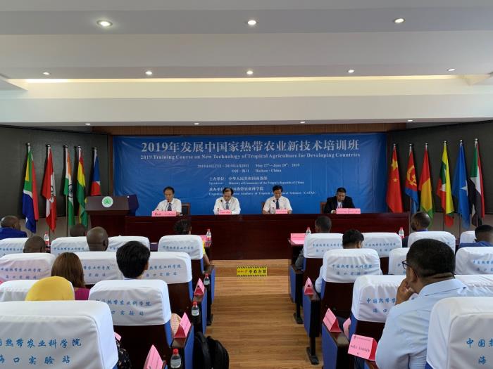 5月27日,由商务部主办,中国热科院承办的2019年发展中国家热带农业新技术培训班在海口院区开班。共有来自赤道几内亚、厄立特里亚、加纳、几内亚、印度、缅甸、秘鲁、索马里、南非、苏丹等三大洲10个国家的25名学员参加为期25天的培训。刘国道副院长与海南省商务厅卓民处长出席开班仪式。
