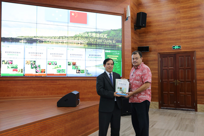 刘国道副院长向代表团赠送《密克罗尼西亚常见植物图鉴系列丛书》