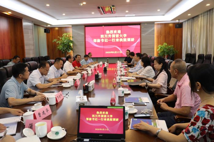 8月17日,四川外国语大学党委书记邹渝到中国热科院调研,双方就涉外外语培训需求和“十四五”规划编制工作等事宜座谈交流。王庆煌院长、李开绵副院长出席座谈会。