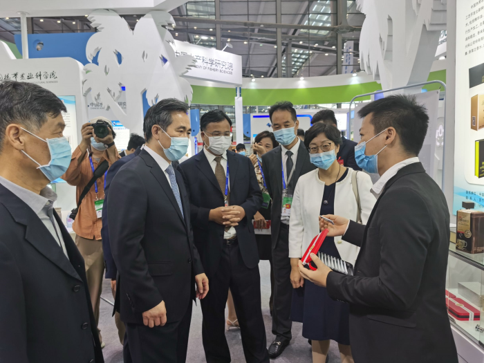 会展期间,中国热科院副院长张以山和中国农科院成果转化局副局长冯艳秋到展区参观指导。商务部党组成员、部长助理任鸿斌亲临展区视察,对香饮所科技成果转化成效给予充分肯定。