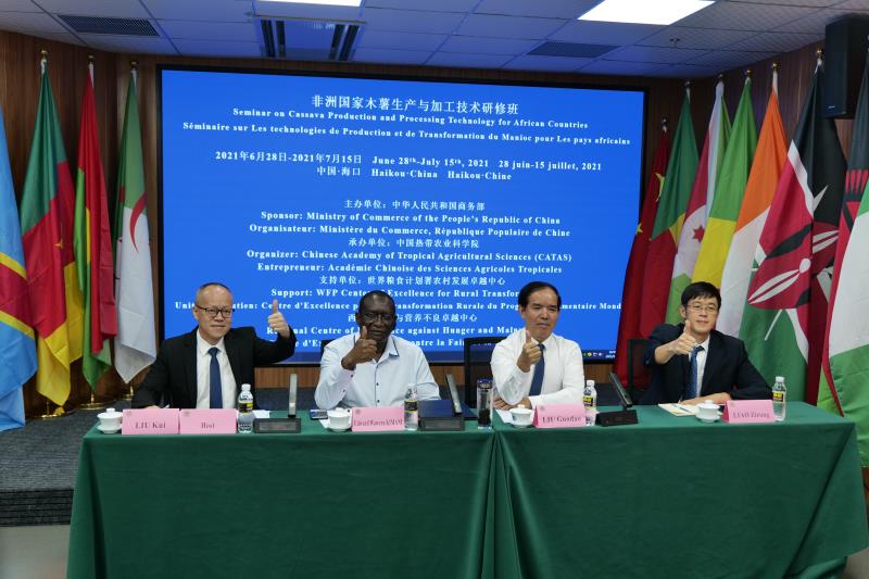 近日,由中华人民共和国商务部主办,中国热带农业科学院承办,世界粮食计划署农村发展卓越中心、西非反饥饿与营养不良卓越中心支持的非洲国家木薯生产与加工技术研修班顺利开班。商务部国际商务官员研修学院陈润云副院长,肯尼亚驻华副大使Edward Waweru KIMANI先生,世界粮食计划署驻华代表屈四喜博士,西非反饥饿与营养不良卓越中心代理国别主任Patrick TEIXEIRA先生,中国热科院副院长刘国道等通过云端或现场等方式出席开班仪式并致辞。