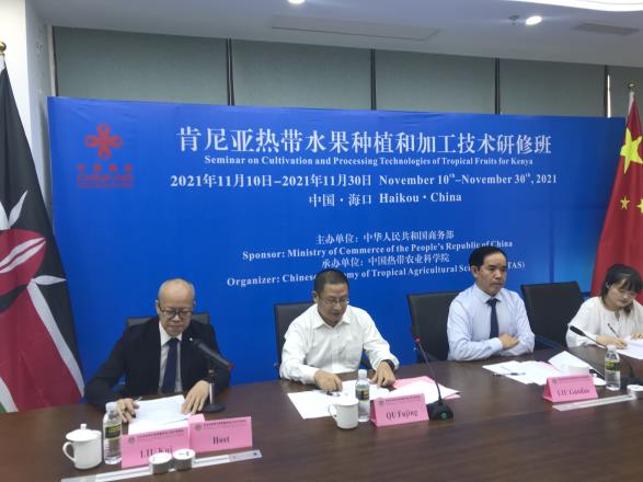 11月10日,由商务部主办,中国热科院承办的肯尼亚热带水果种植和加工技术研修班在海口市线上开班,来自肯尼亚蒙巴萨县政府、基利菲县政府、夸莱县政府、凯里乔县政府、基西县政府、乔莫肯雅塔农业技术大学、教师服务委员会等单位的39名学员将参加为期21天的研修,共叙中肯水果情谊。