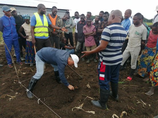 鉴于学员和技术官员都没有大豆种植经验,甚至没有见过大豆,因此,授课专家把培训重点放在大豆种植全过程的基本技术要求上。授课专家详细讲解了整地、施基肥、播种的要求与方法,并亲自示范、带领学员完成了20米X20米面积大豆种植,对后期田间管理也作了详细的要求与安排。