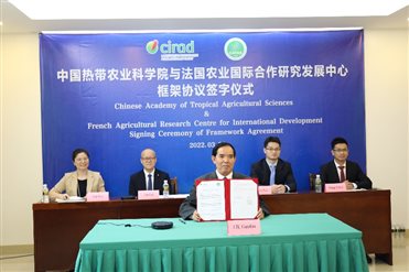 刘国道副院长在致辞中表示,农业是中法两国政府高层互动的重要领域,今年年初两国农业部长会面为农业科技合作提供了方向指引。双方在热带农业领域已有近40年的合作历史,希望新一轮合作协议签署将进一步拓展合作领域并创新合作方式,共同为热带农业可持续发展提供更好的解决方案。