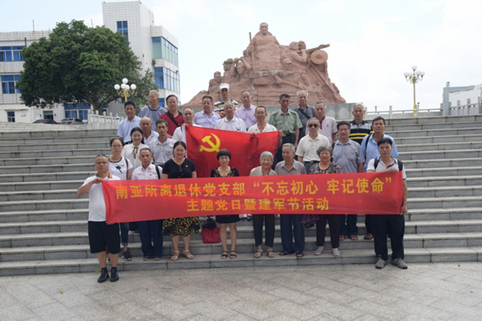 为庆祝中国共产党建党98周年及中国人民解放军建军节92周年,进一步加强党员“不忘初心、牢记使命”主题教育,增强党组织的凝聚力,弘扬革命军人不怕流血牺牲,勇往直前的大无畏精神,日前,南亚所组织离退休党支部党员和复员军人35人,前往鹤地水库党员教育基地开展“不忘初心、牢记使命”主题党日暨建军节活动。