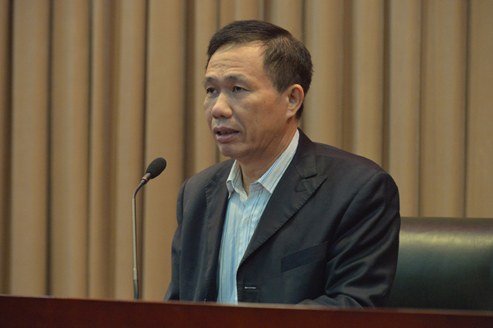 老专家林钊沐在部离退休干部首场宣讲报告会上作报告
