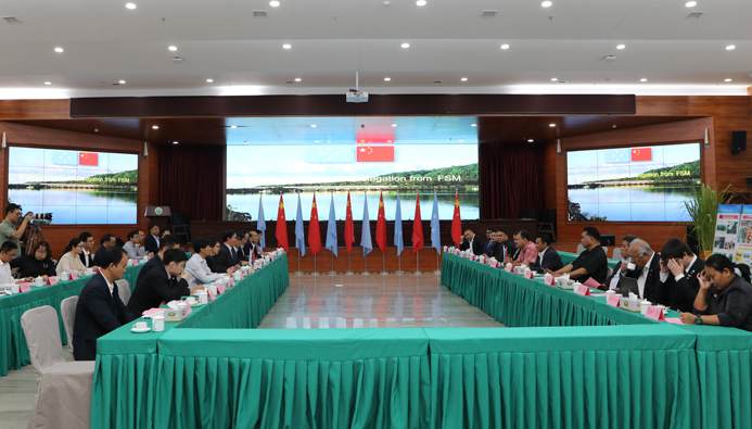 2019年12月15日,密克罗尼西亚联邦国会副议长Esmond B. Moses、国会议员Aren B. Palik和驻华大使Carlson D.Apis等一行13人,在海南省外事办公室康拜英副主任的陪同下访问中国热带农业科学院。双方举行座谈会,就中密热带农业科技合作进行了深入探讨和交流。刘国道副院长出席座谈会,会议由院国际合作处黄贵修处长主持。