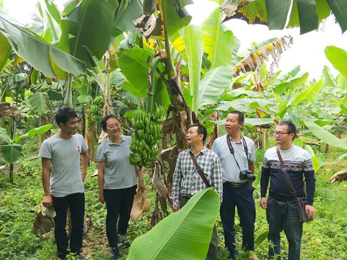 在云南河口及西双版纳景洪勐海等主要香蕉种植区,谢艺贤研究员等专家针对当地蕉园的主栽品种、香蕉枯萎病的发生情况、农药肥料的施用及蕉价进行深入调研。针对枯萎病危害日益严重的情况,建议在加强水肥管理等栽培措施的基础上,改变较为单一感病品种的种植模式,改种抗病品种。