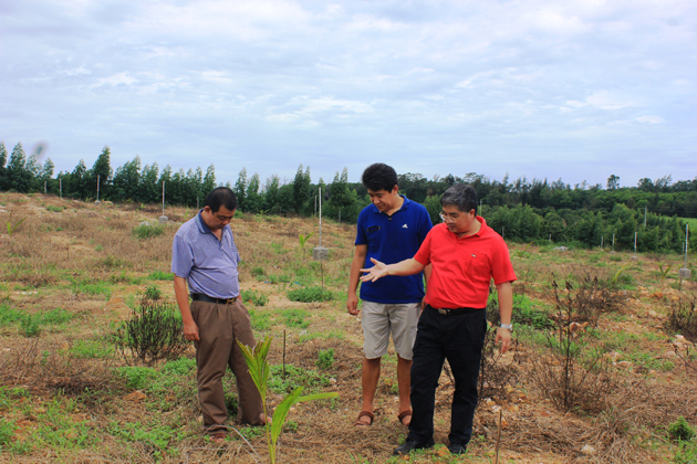 7月22日,香饮所宋应辉书记带领赖剑雄副研究员和赵溪竹博士等科技人员赴海南省东方市永得农场现场指导可可生产种植。