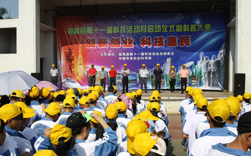 开幕式上,刘国道副院长表示,多年来我院与临高县在科技项目实施、农业示范基地建设、农业科技培训和技术下乡方面已经开展了多项合作,此次科技活动月,我院将针对临高农业生产实际,组织热带农业高效栽培、病虫害防治、农产品质量安全等领域的专家,为临高县热带农业增产增效、农民增收提供强有力的科技支撑。