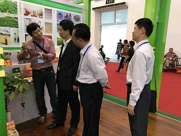 海南省林业厅黄金城副厅长、周亚东总工程师等领导参观了橡胶所展台,向科技人员询问了橡胶树组培苗、油棕组培苗以及炭化橡胶木家具等科技产品的生产和推广情况,对橡胶所在橡胶树良种良苗生产和橡胶木材改性等方面的科研工作给予了高度赞扬。