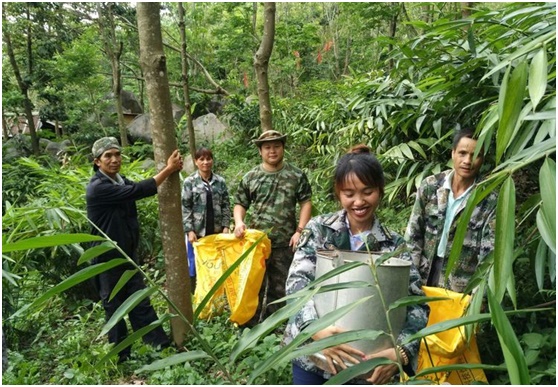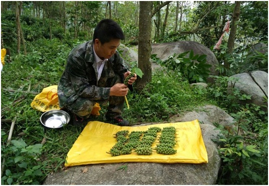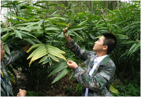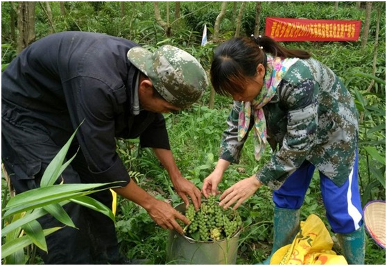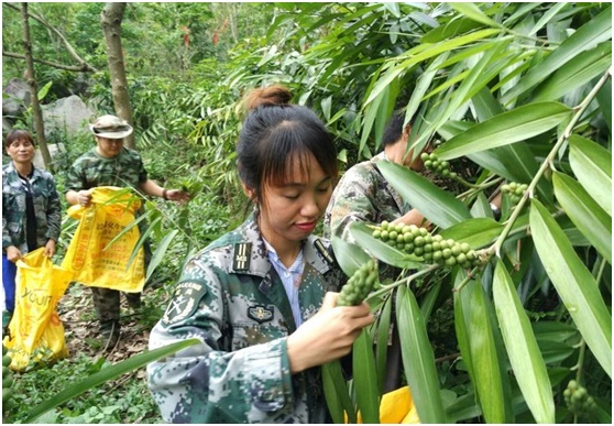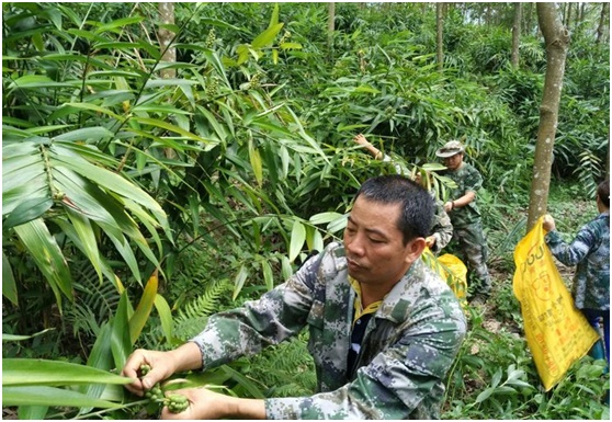 5月24日下午,白沙县青松乡拥处村委会驻村第一书记秦韶山带领班子到拥处村开展益智采摘及产量测算活动。