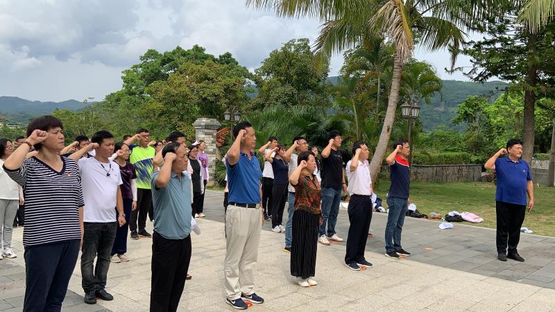 主题党日活动在海南省定安县母瑞山革命根据地纪念园内进行,首先全体同志在讲解员的带领下参观了琼崖革命志士纪念馆,了解革命先烈们的英雄事迹和琼崖革命的艰难历程。接下来,已83岁高龄的原纪念园园长、现任纪念馆义务讲解员的王学广老先生为所有同志上了一堂生动的微党课,同志们听闻革命故事、感受革命精神,无不纷纷动容。
