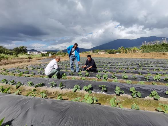 在五指山市番阳村,大家围绕农产品认证和品牌化建设进行了交流,中心离退休干部负责同志介绍了近期工作开展情况,番阳村委会刘超书记表示,一直以来测试中心都大力支持番阳村的发展,通过对土壤的检测制定了相应的施肥方案,赠送酸性土壤改良肥改良土壤,每个月中心的科研人员都定期到番阳村来对村里的3000多亩的青瓜、豆角基地进行技术指导,有力保障了冬季瓜菜基地土壤的安全可持续。