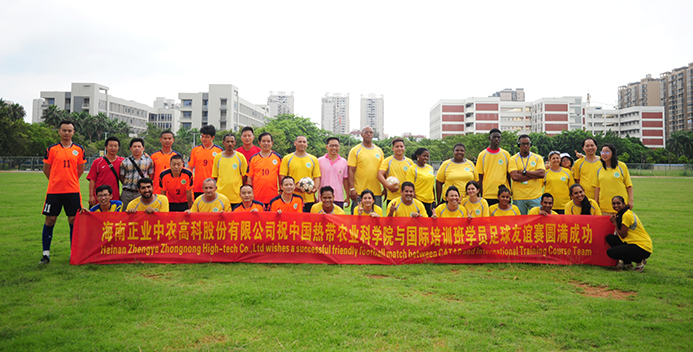 8月15日,为丰富我院承办的2017年发展中国家热带作物病虫害防控技术培训班学员的业余生活,促进中外科技人员的相互了解,我院足球俱乐部组织了与外国学员的足球友谊赛。中外双方队员齐聚海口院区绿茵球场,比赛热情高涨、斗志昂扬。此场比赛为我院备战省直机关第四届职工运动会青年男子足球赛起练兵作用,同时也得到海南正业中农股份有限公司的大力支持。