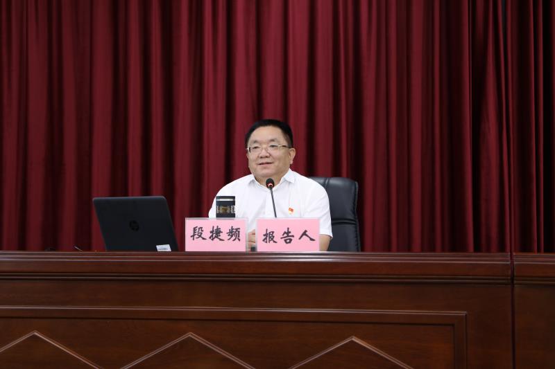 段捷频教授以“中国共产党为什么‘能’”为主题,从科学的理论指导、坚定的理想信念、强大的组织优势、坚实的群众基础、彻底的自我革命等五个方面诠释了“能”,深入分析了党史学习教育“学党史、悟思想、办实事、开新局”的目标要求。报告详细讲述了建党以来的光辉历程,系统总结了党在长期斗争实践中继承发扬的优良传统,深刻剖析了中国共产党能够带领中华民族走向伟大复兴的根本原因,为我院开展党史学习教育作了系统辅导。