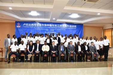 11月28日,由商务部主办,中国热带农业科学院承办的卢旺达热带粮食作物种植与加工技术海外培训班在卢旺达首都基加利顺利结业。中国驻卢旺达大使王雪坤、卢旺达农业和动物资源开发委员会主任Telesphore Ndabamenye、卢旺达农业和动物资源开发委员会胡耶卢伯纳站站长Evalde Kagwa、中国热带农业科学院专家彭军和王飞,及驻卢大使馆工作人员、中卢农业技术示范中心代表、卢农业和动物资源开发委员会工作人员、全体学员等近60人参加结业典礼。