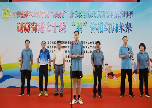 今年是新中国成立75周年、中国热科院建院70周年,5月18—20日,中国热科院举办“橡胶杯”羽毛球赛暨第七届羽毛球混合团体赛。院党组书记崔鹏伟、副院长方骥贤、羽毛球俱乐部会长李开绵、橡胶所党委书记邹奎出席活动,崔鹏伟书记致开幕辞。
