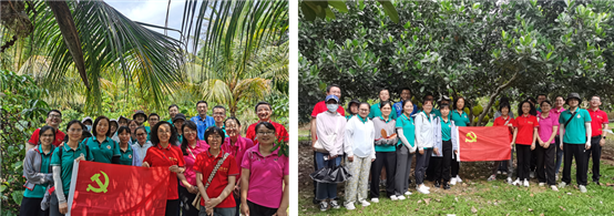 本次活动坚持围绕中心抓党建、抓好党建促科研,重点针对国家热带香料饮料种质资源圃中,近几年香饮所热带香辛料种质资源研究室的可可、咖啡、菠萝蜜等作物新品种权申请及资源创新利用服务产业发展进行了深入交流。支部一起参观了咖啡和菠萝蜜品种示范基地,进一步就资源创新利用和品种选育在支撑产业发展方面进行了交流,并就下一步如何更好开展更多新品种权申请工作达成共识。本次党建活动以“合作共赢”为纽带,发挥党支部战斗堡垒作用,真正做到强强联合、凝心聚力抓好党建促科研,提升党建工作水平。