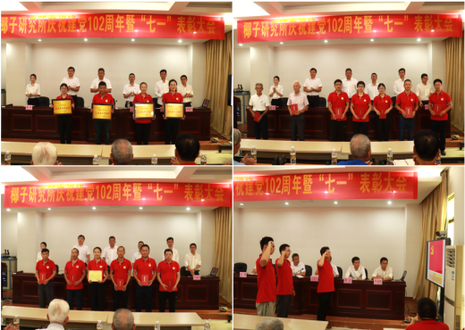 7月3日,椰子所召开庆祝建党102周年暨“七一”表彰大会,表彰2022年度先进基层党组织、优秀共产党员、优秀党务工作者。所党委书记叶剑秋出席会议并讲话,副所长王挥宣读表彰决定,党委副书记、副所长陈刚主持会议。
