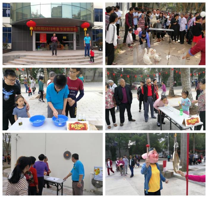 游园活动内容丰富多彩,有套鸭子、钓鱼等12个游园项目,老少皆宜,简单却又充满了趣味性。在海口院区过年的职工群众踊跃参与,活动现场秩序井然、欢呼声不断,到处都洋溢着欢乐和谐的节日气氛。