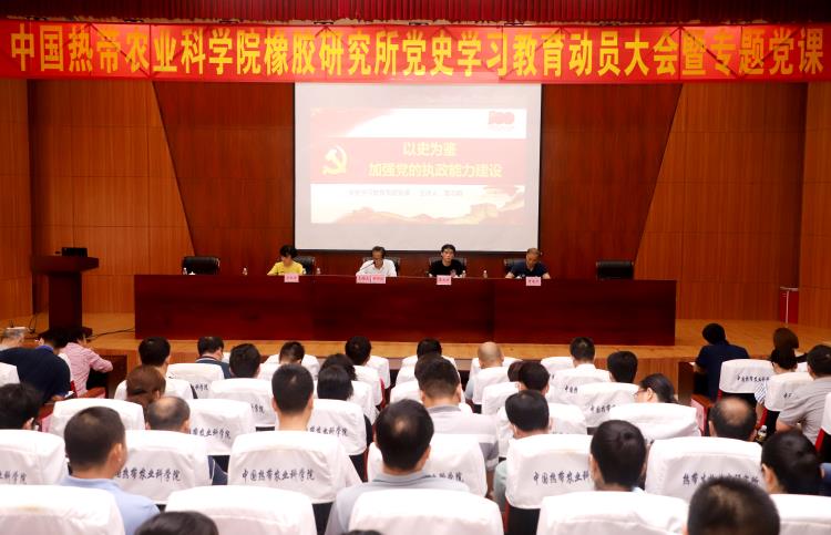 为深入贯彻落实院党史学习教育动员部署大会部署安排,持续深入推进党员干部思想政治建设,3月29日,橡胶所召开党史学习教育动员大会暨专题党课。所党委书记黎志明为全所党员上了一堂题为“以史为鉴,加强党的执政能力建设”的专题党课。大会由所党委副书记、所长黄华孙主持。