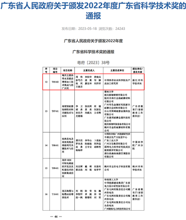 近日,广东省人民政府网发布了关于颁发2022年度广东省科学技术奖的通报,由中国热带农业科学院农产品加工研究所食品加工研究室完成的科技成果“粤西主要热带水果提质增效加工技术集成与推广应用”喜获2022年度广东省科技成果推广奖,周伟博士为第一完成人,加工所为唯一完成单位。