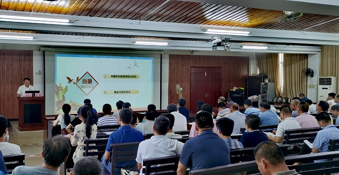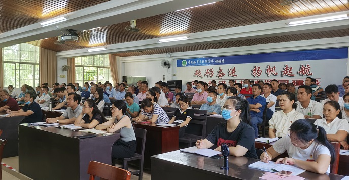 肖晖书记围绕着热科院老一辈党员科学家们艰苦创业的历史和毒品与国民安全两个专题来讲述,跟大家分享了多个艰苦创业和保障人民安全的励志故事。他指出,“无私奉献、艰苦奋斗、团结协作、勇于创新”是热科院的立院之本,是热科院精神支柱,是支撑引领我国热带农业从无到有、从小到大、从弱到强的巨大力量源泉。他深刻阐述了立院之本橡胶存在的价值、迁所联昌的来龙去脉、艰苦创业的点点滴滴以及科研上取得不朽的丰碑等,让试验场的党员干部对院史有了更加深刻的了解,增强党员干部自豪感。他呼吁每一位干部职工都要秉承热科院的优良传统,要以党员为先锋,结合试验场工作实际主动作为,扛起试验场振兴的责任与担当。