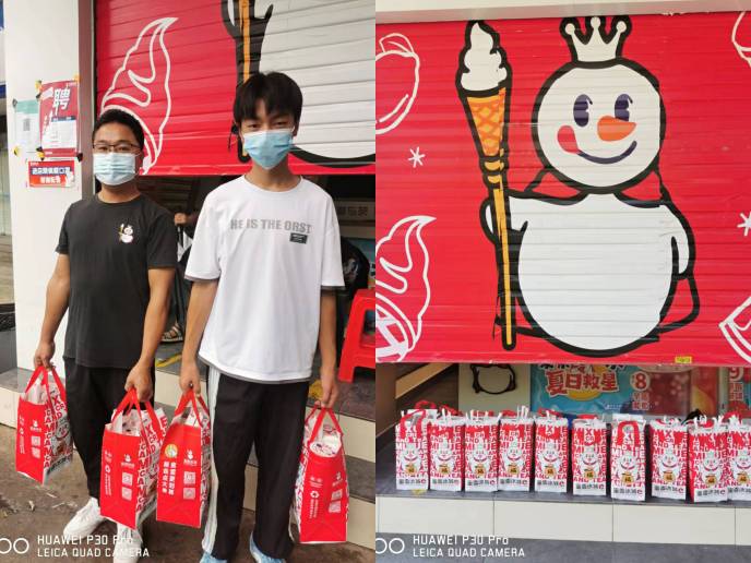 两院蜜雪冰城每日为各卡点、医护人员送清凉,柠檬茶,红茶,绿茶累计1450杯。让他们在炎热的夏季感受到甜甜的清凉。