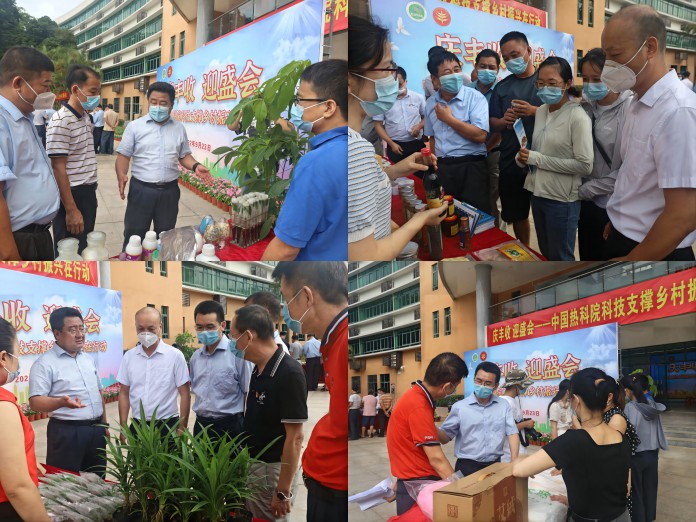 在科普展示环节,品资所、橡胶所、环植所、海口站、试验场等单位进行科学技术、科技产品展示,展示斑兰叶、兰花、橡胶等组培苗技术,橡胶专用肥、橡胶树增产素、捕食螨生物防治等栽培用科技产品,益智酒、鹧鸪茶、竹薯粉、养生茶、乳胶枕、艾绒被等科技产品,受到参会人员的广泛关注,人人纷纷上前了解先进技术、产品作用。