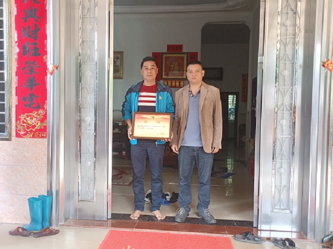 3月1日至3日,试验场退役军人服务站来到丘凡、六坡、俄城、大吉等队,为获得“四有”优秀义务兵称号的现役军人家庭送去喜报。此次获得喜报的分别是役义务兵王地晟、陈开基、李多仲、高岳峰。