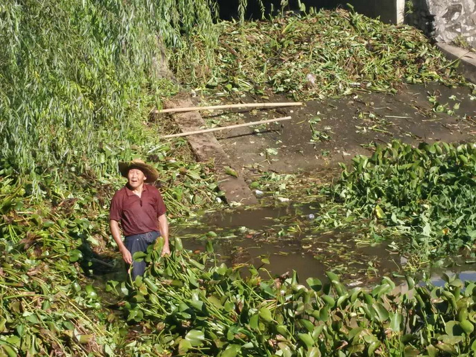 数年来,时光流转,信念不老,他始终坚持着,自己也记不清到底清理了多少水浮莲。