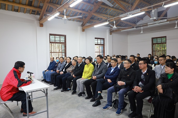 儋州市委副书记、政法委书记、党校校长何先英一行97人在联昌试验站旧址聆听陈海青作的宣讲报告