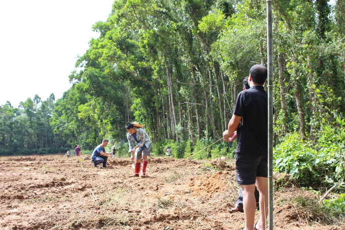 三队作为我院橡胶所试验核心区和成果示范区,任何一个橡胶生产环节都不可放松。为了能够尽快完成三队老胶园更新地的橡胶种植,场科技生产办工作人员连续两周放弃周末休息时间,顶着烈日带领作业工人,抓住有利天气,高标准、严要求地做好橡胶种植规划、定标工作。他们无私忘我、认真严格执行橡胶生产每一环节地工作不仅为将来橡胶丰产打下坚实的基础,也给橡胶生产起了一个很好的示范作用。