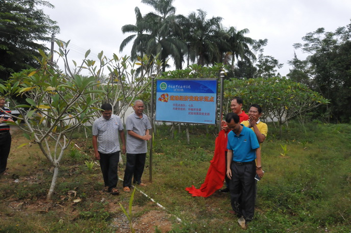 参加活动的党支部书记共同为七队的“道路经济党建示范点”揭牌,并由环植所机关第一党支部为七队赠送槟榔苗和肥料。